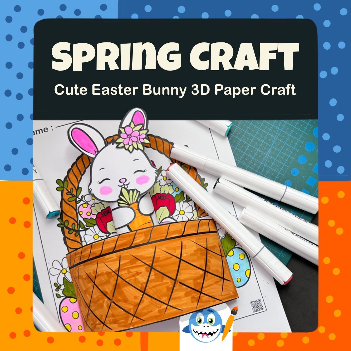 Celebrate spring and Easter with this adorable 3D paper craft featuring a cute bunny popping out of an egg-filled basket! This hands-on activity is perfect for preschool and elementary kids to color, cut, and glue — building fine motor skills while having fun.