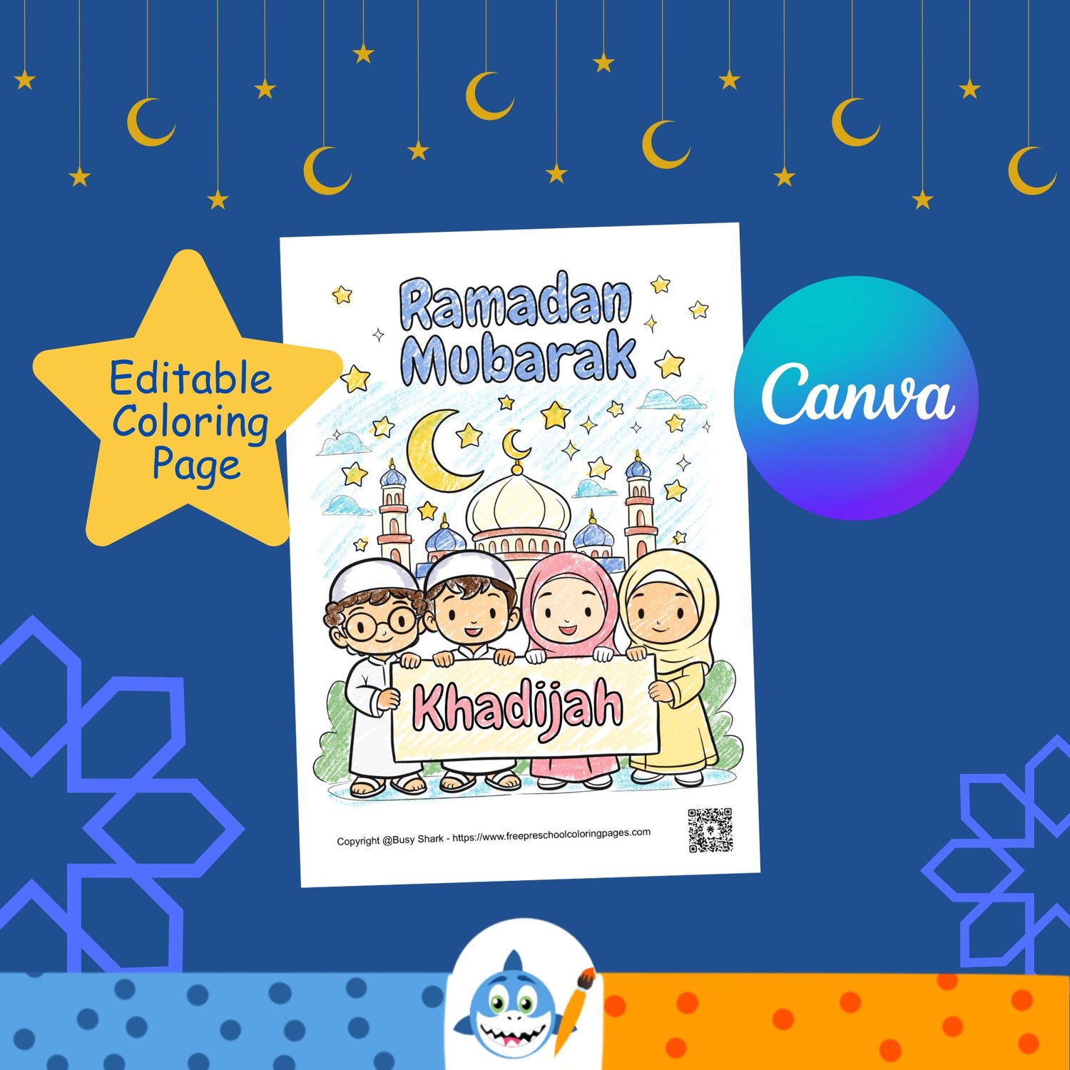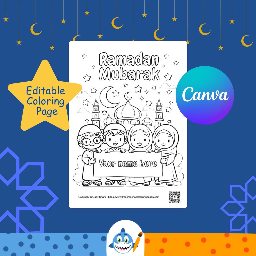 Personalized Ramadan Coloring Page – Editable in Canva