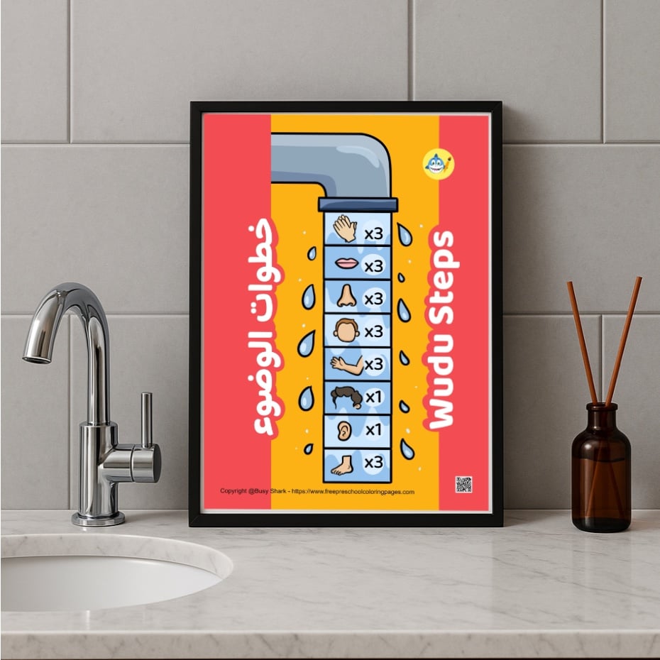 Help kids learn and remember the steps of Wudu while adding a beautiful Islamic touch to your space!