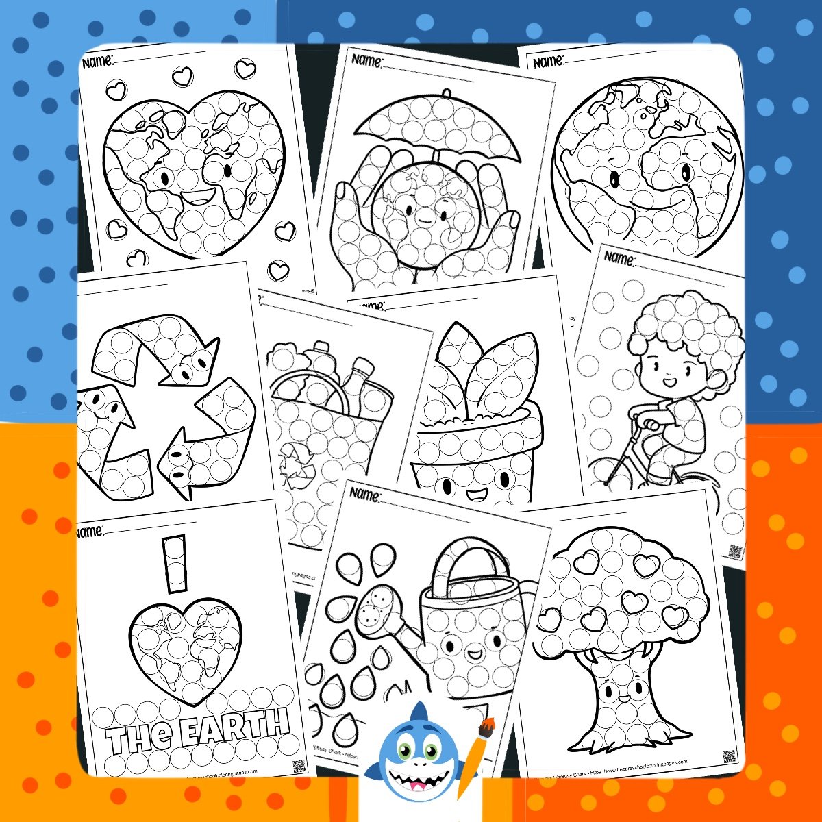 These cute and happy designs are ideal for toddlers, preschoolers, and kindergarteners to learn about recycling, loving the Earth, planting, and more – all while having fun dotting and coloring!