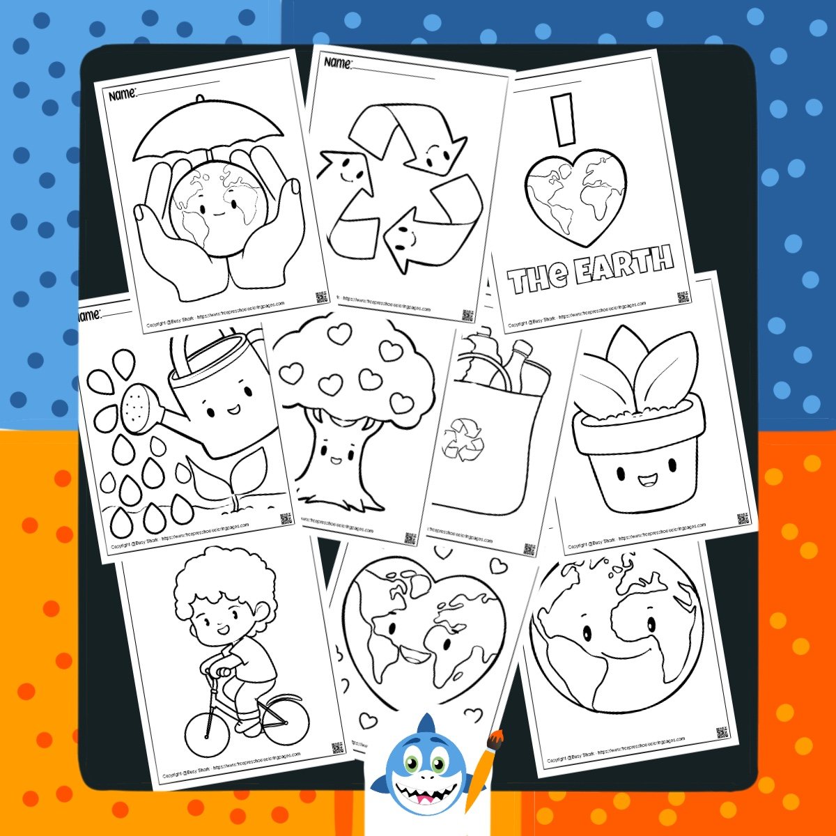- Fun Earth Day themes: Earth characters, recycling symbols, trees, plants, kids biking, and more!